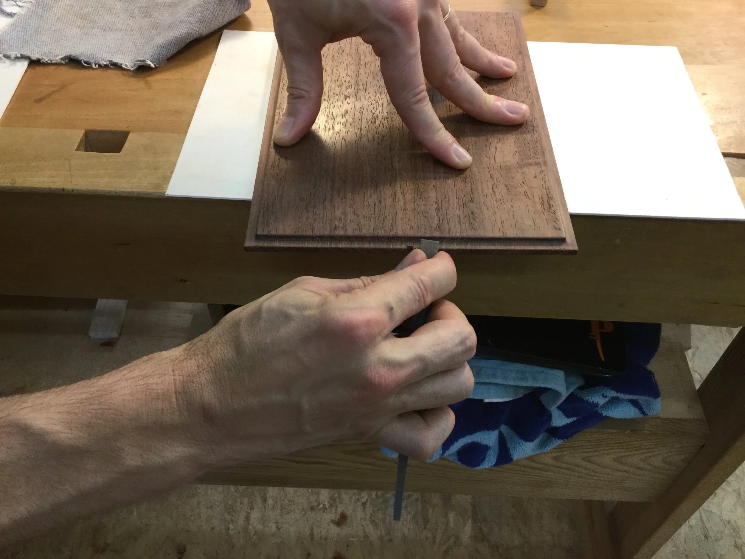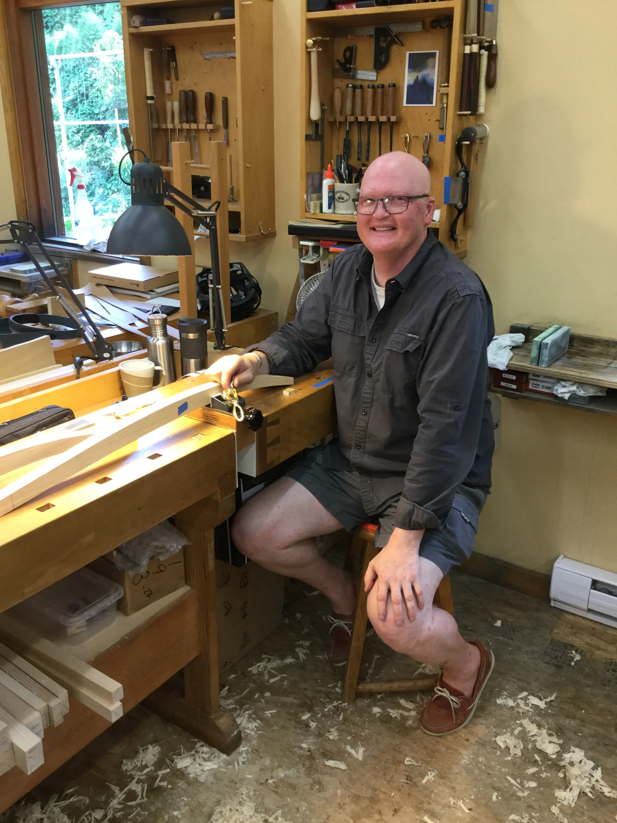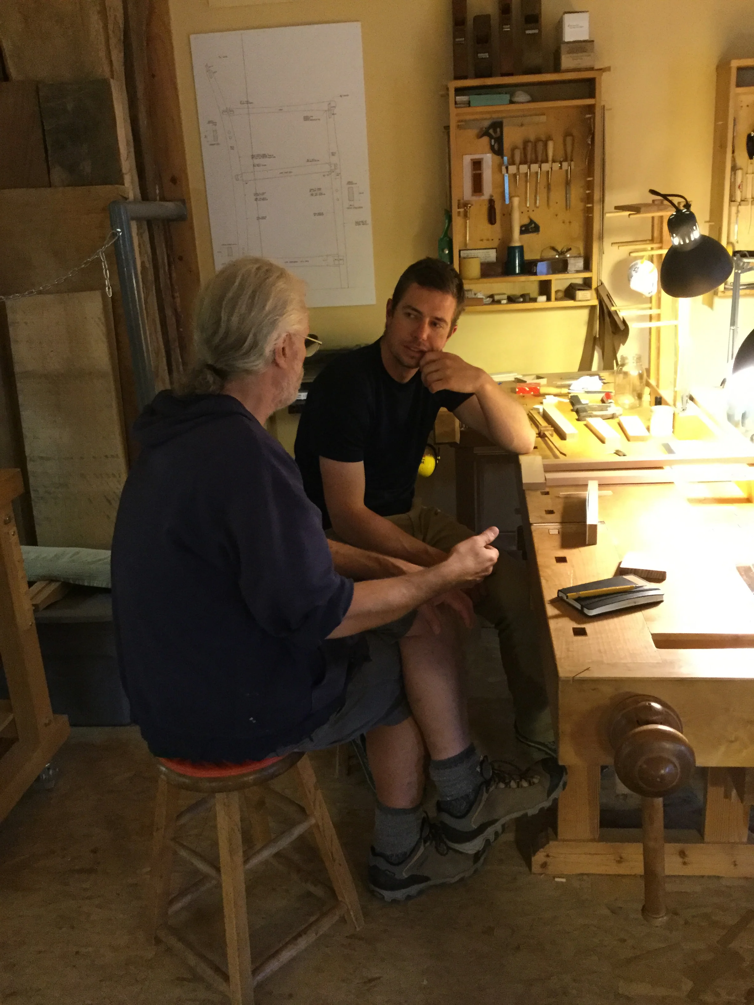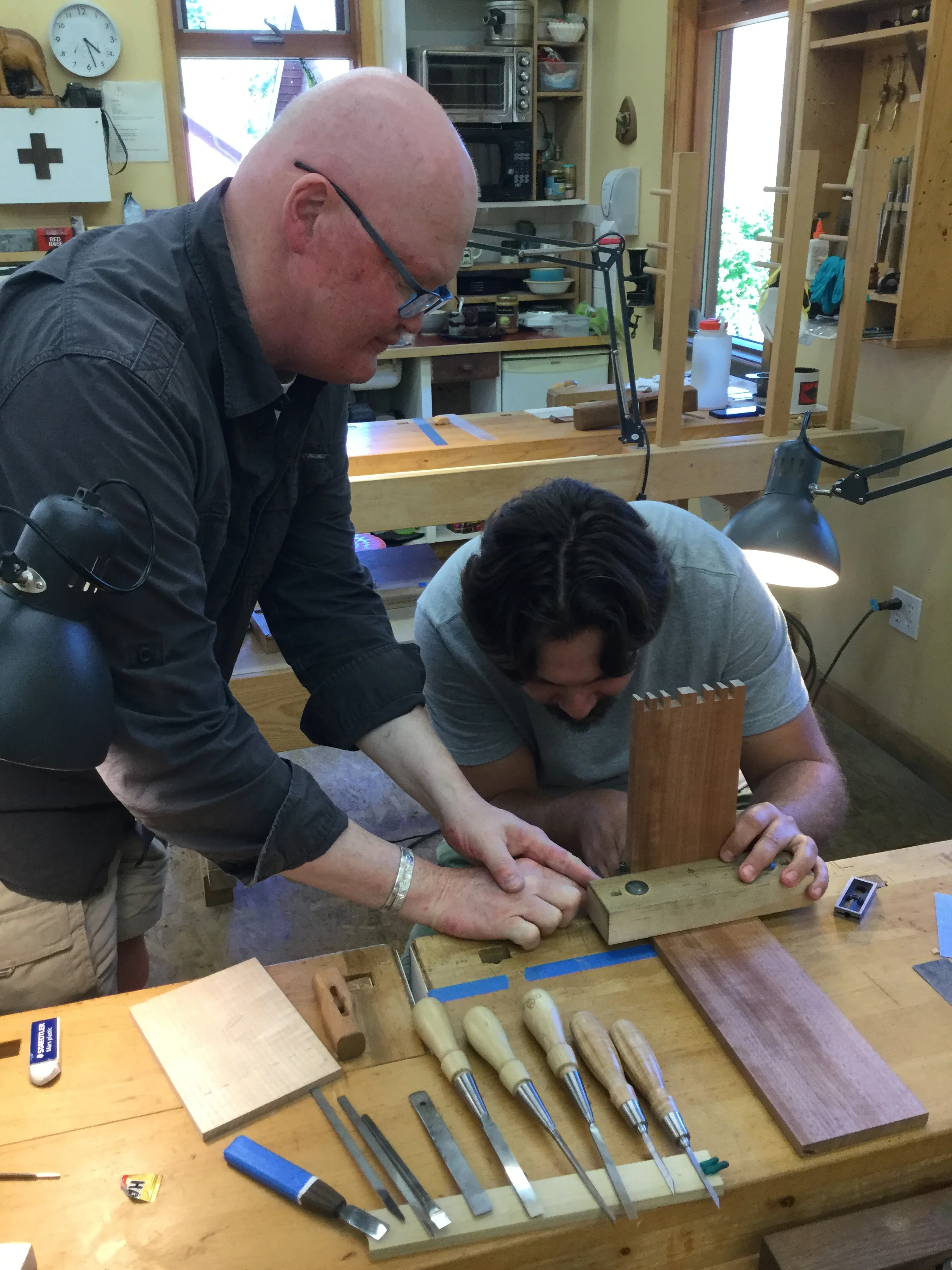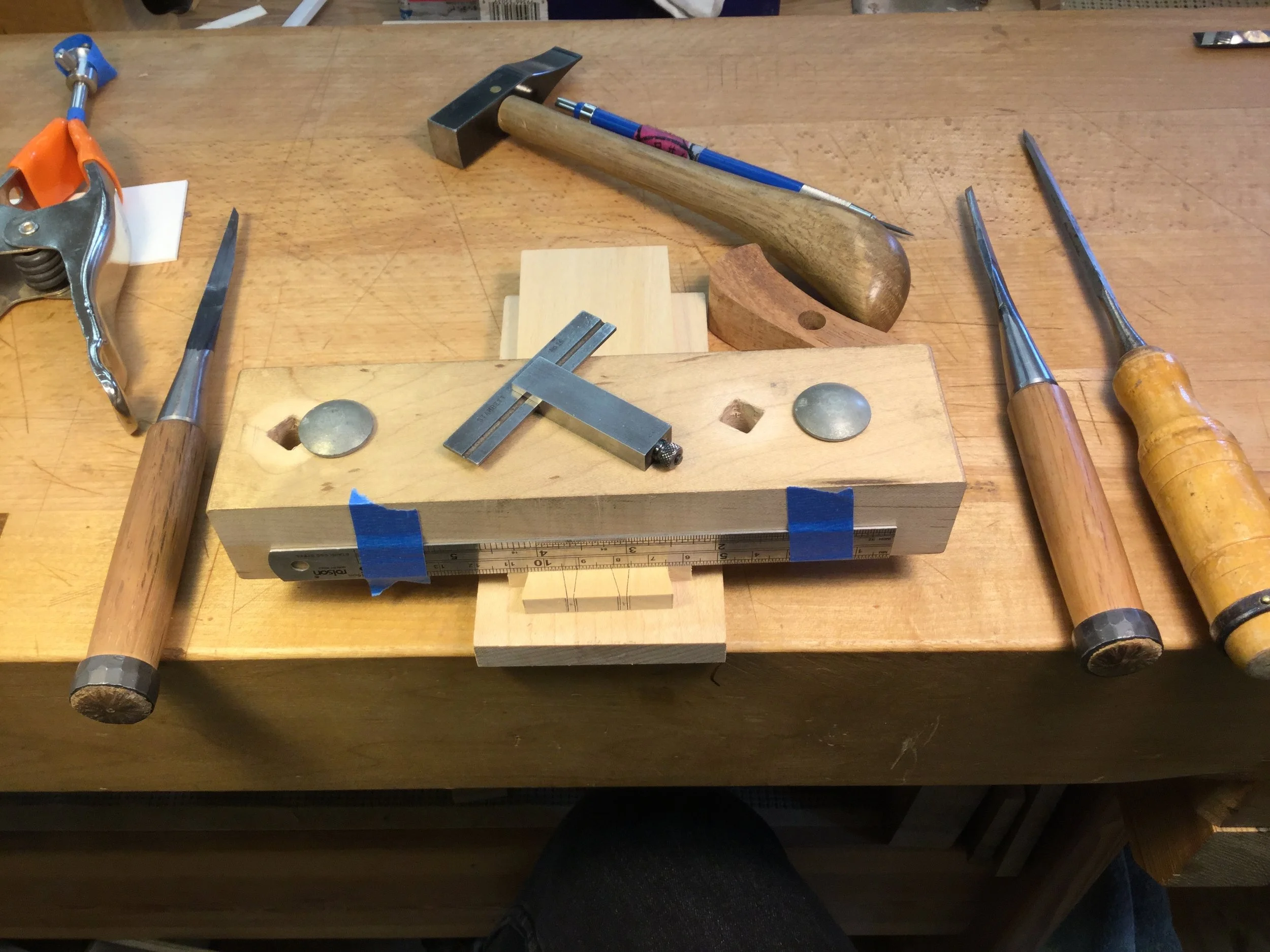 We had a full complement of students for both classes. The first class, curved bottom planes, began on the Sunday, with more than half the class staying on for the second class, curved frame and panel. In the second class, they had the opportunity to use the planes made in the first class to shape the panels in the latter. On the Tuesday evening, I gave a talk and slideshow with several of our own alumni as well as many students from each of the previous classes we taught in Israel attending. I am so grateful for all making such a considerable effort to join us. Most notably, it was so nice to catch up with Chen, Amir and of course Refeal who took both classes. It was also such a pleasure to catch up with my friend Moshe who was my bench mate during my first visit to Israel six years ago. I felt very grateful to have him in the second class.