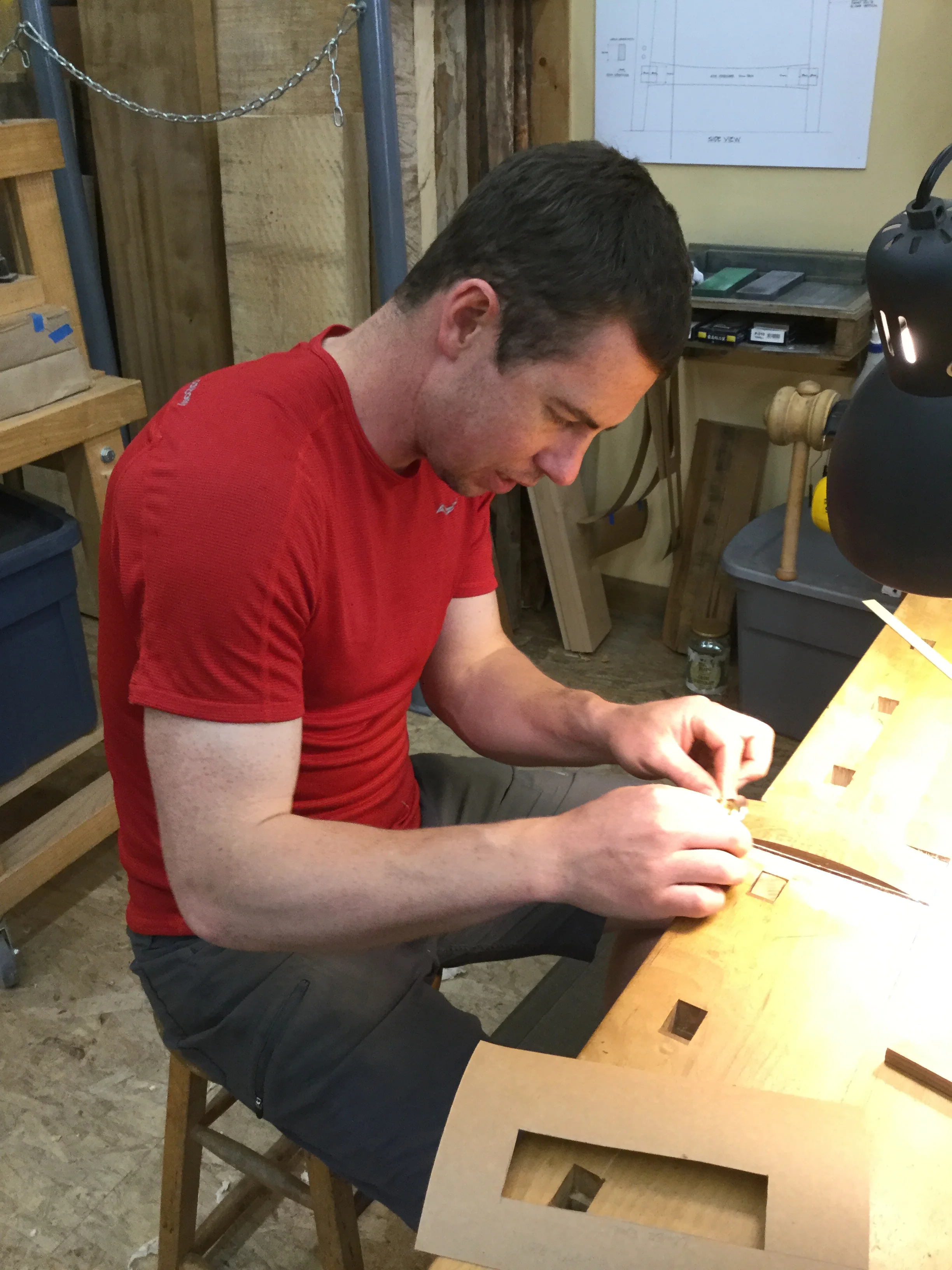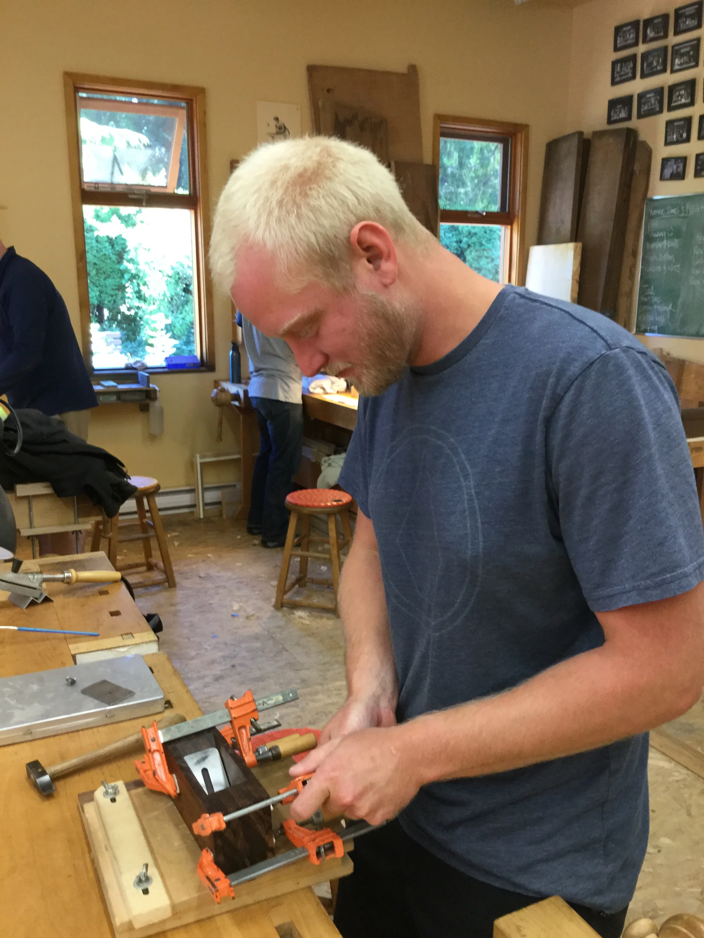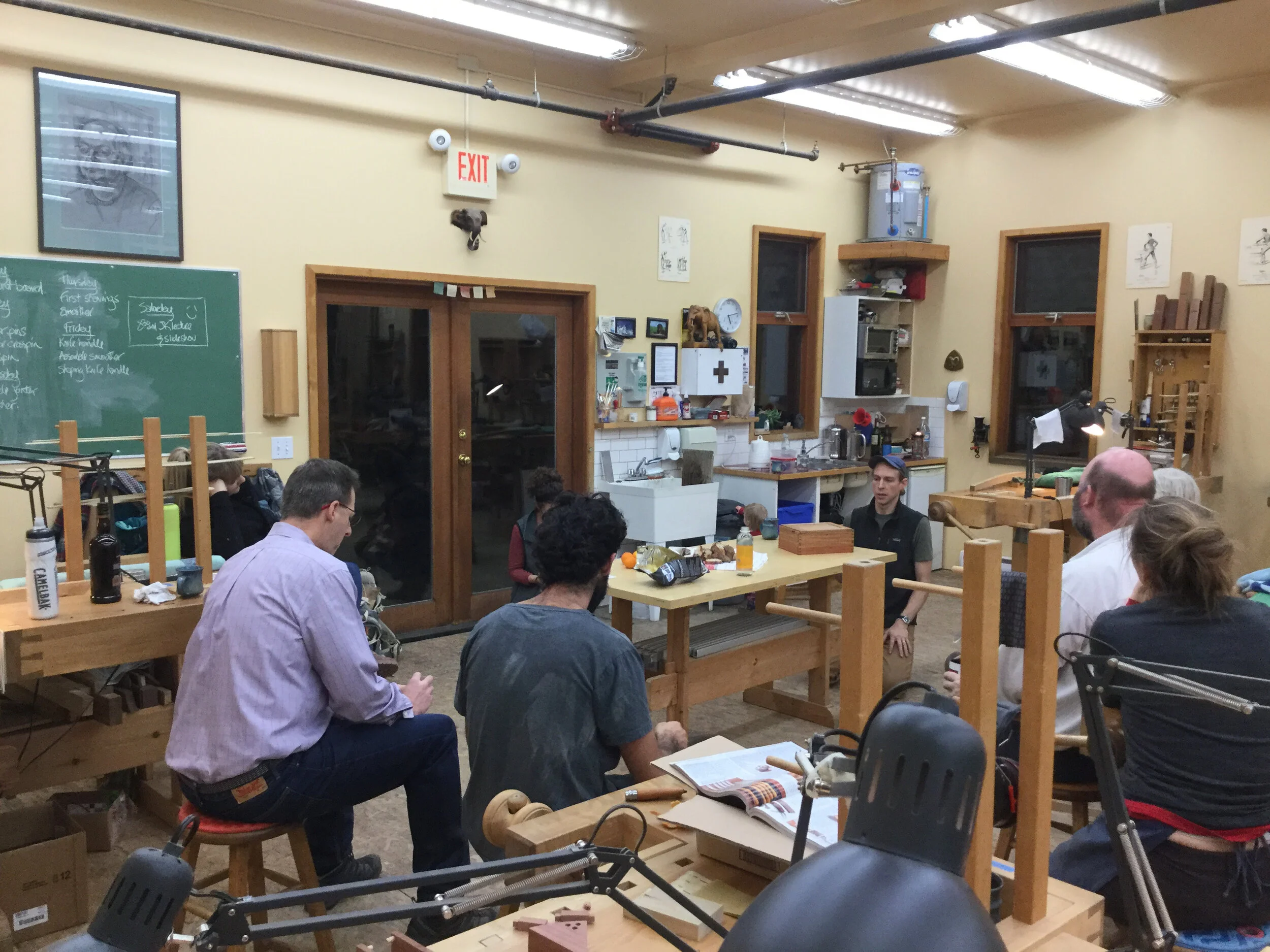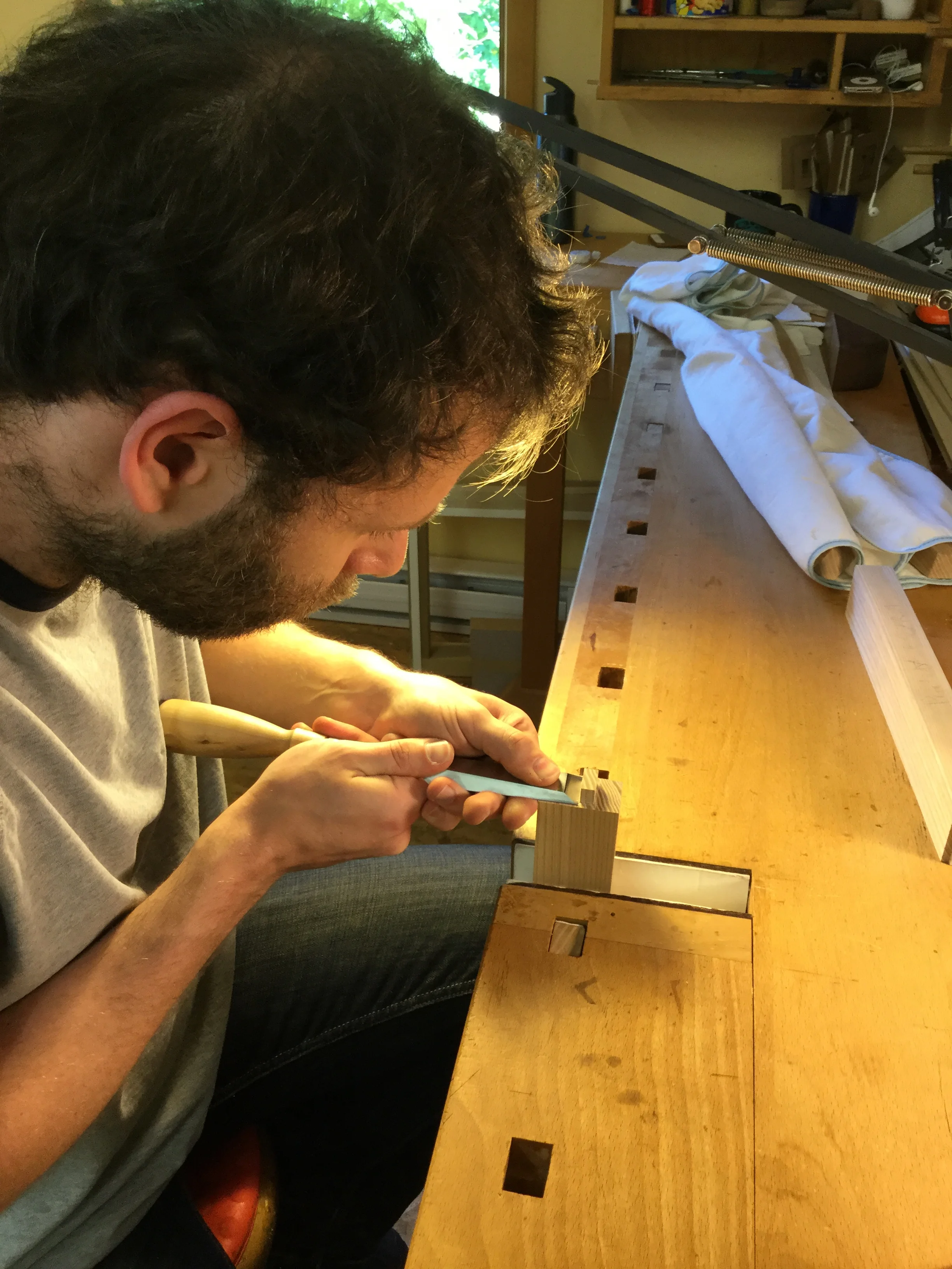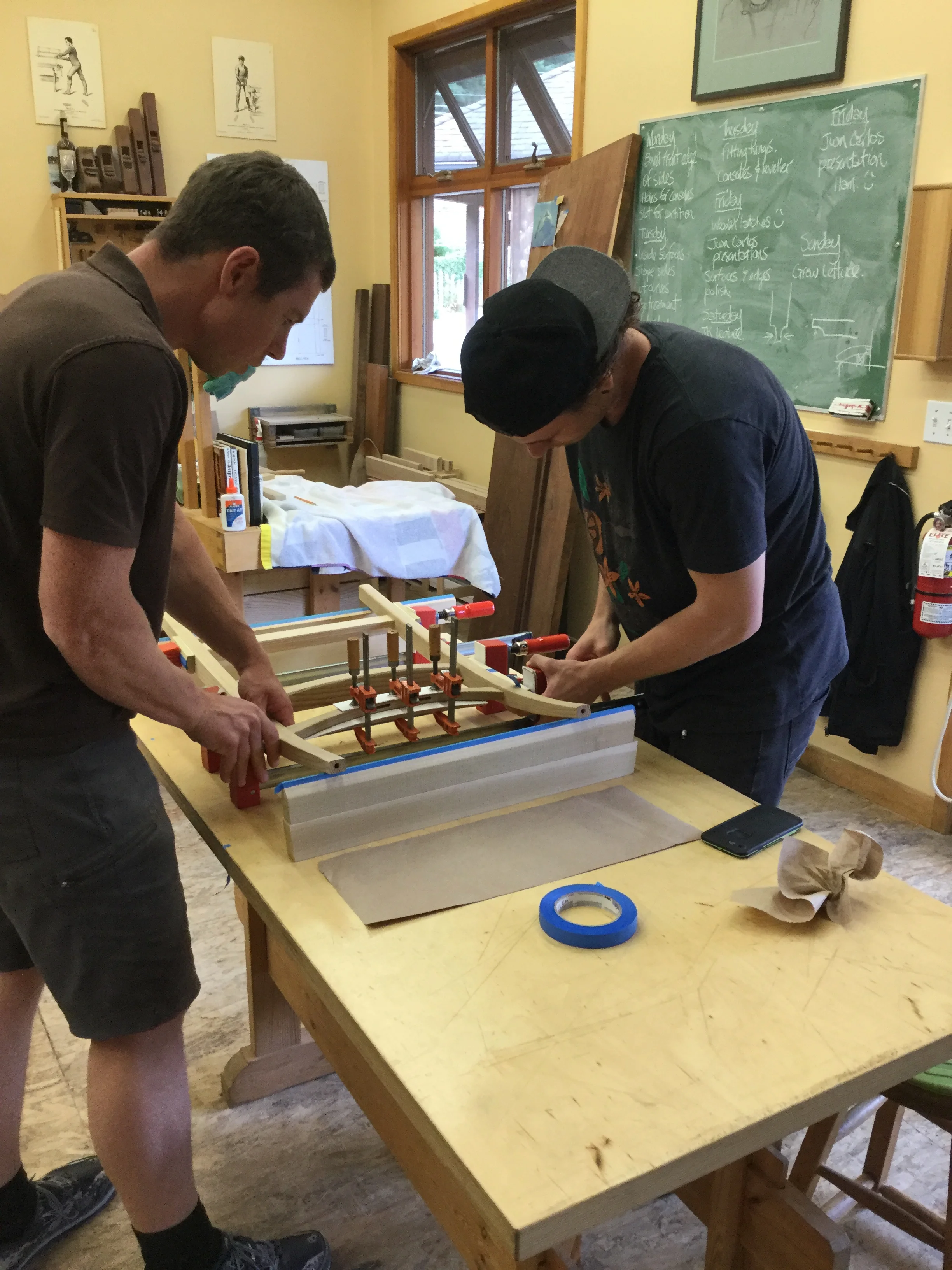 We had a full complement of students for both classes. The first class, curved bottom planes, began on the Sunday, with more than half the class staying on for the second class, curved frame and panel. In the second class, they had the opportunity to use the planes made in the first class to shape the panels in the latter. On the Tuesday evening, I gave a talk and slideshow with several of our own alumni as well as many students from each of the previous classes we taught in Israel attending. I am so grateful for all making such a considerable effort to join us. Most notably, it was so nice to catch up with Chen, Amir and of course Refeal who took both classes. It was also such a pleasure to catch up with my friend Moshe who was my bench mate during my first visit to Israel six years ago. I felt very grateful to have him in the second class.
