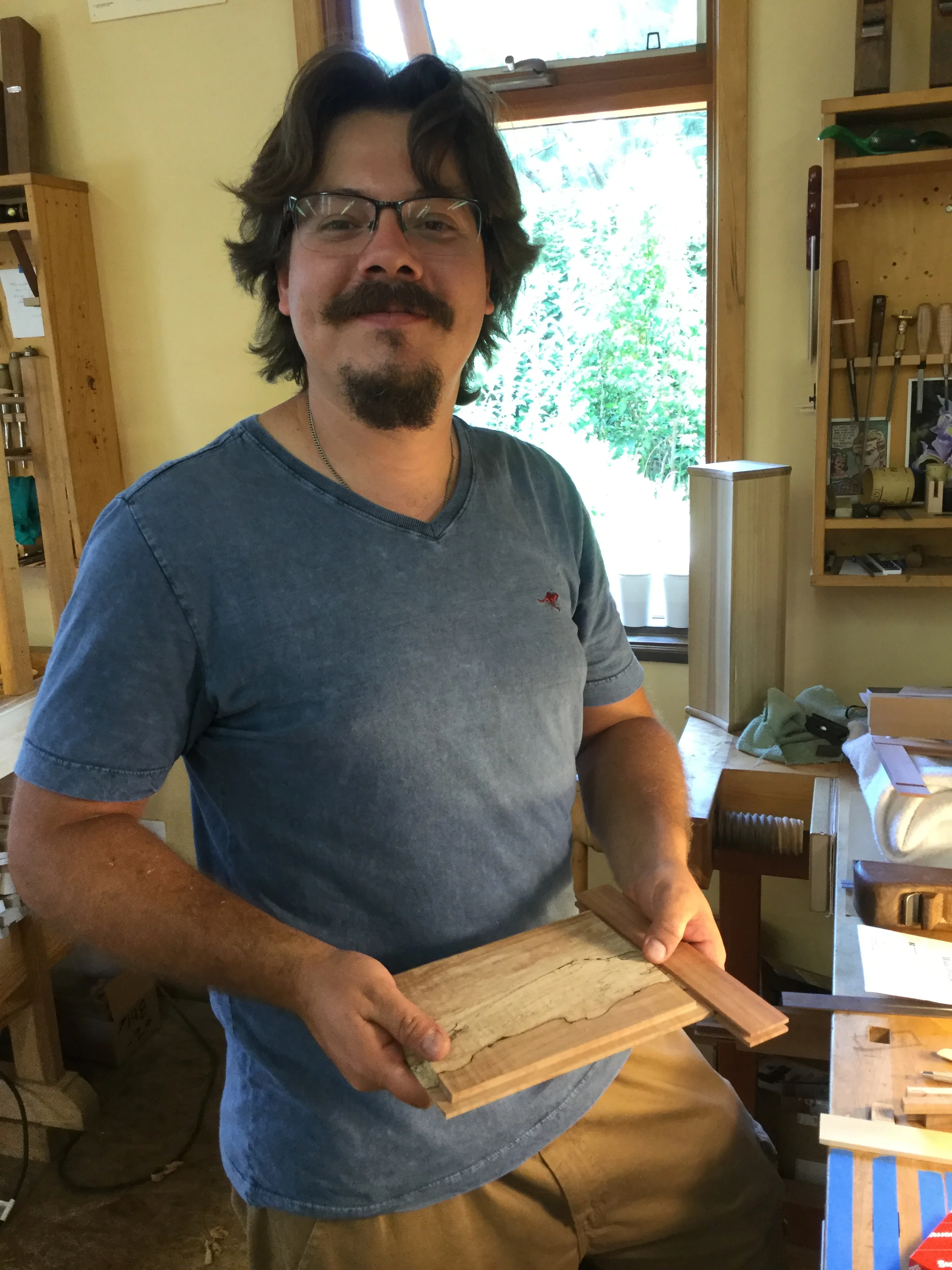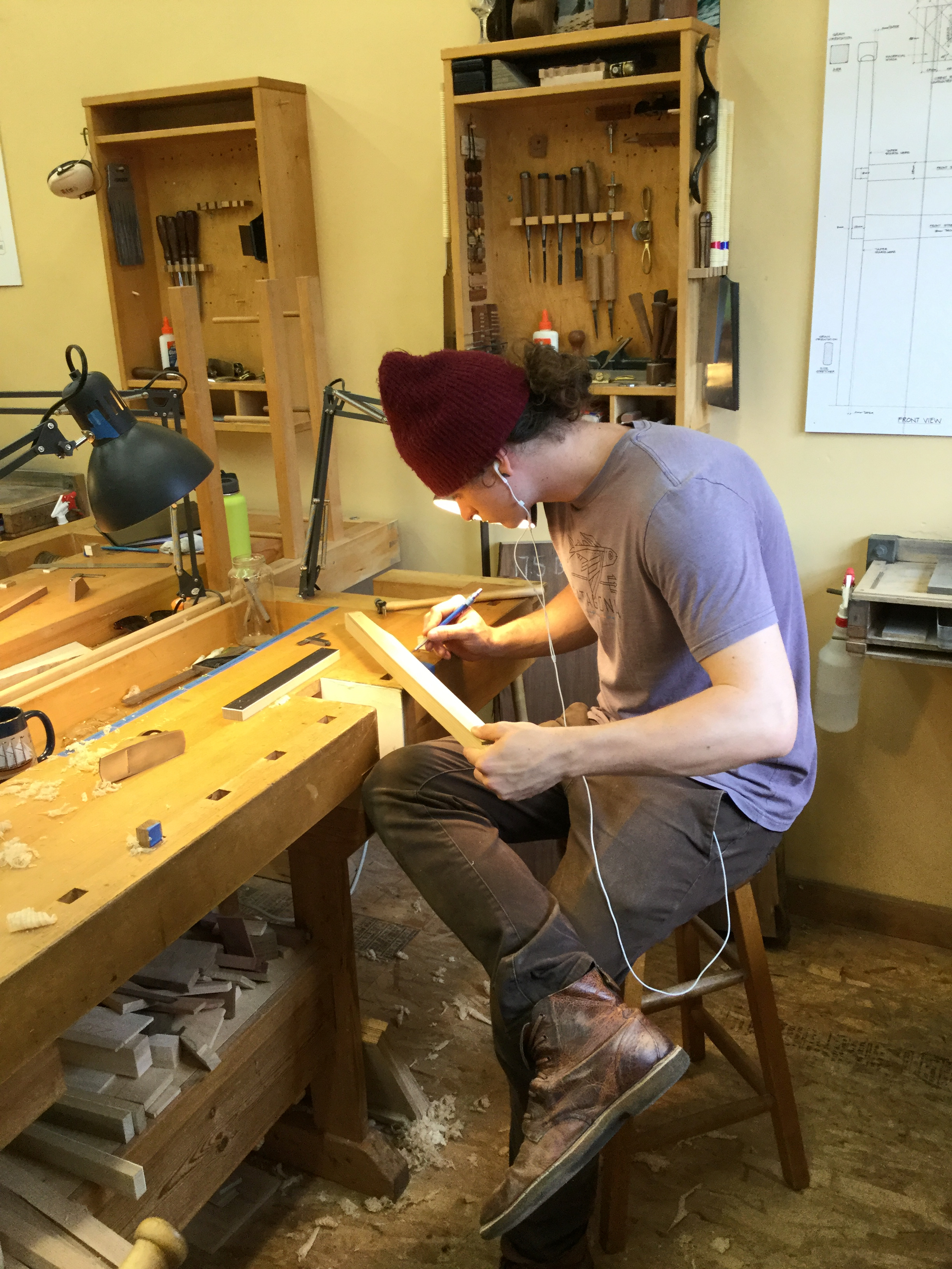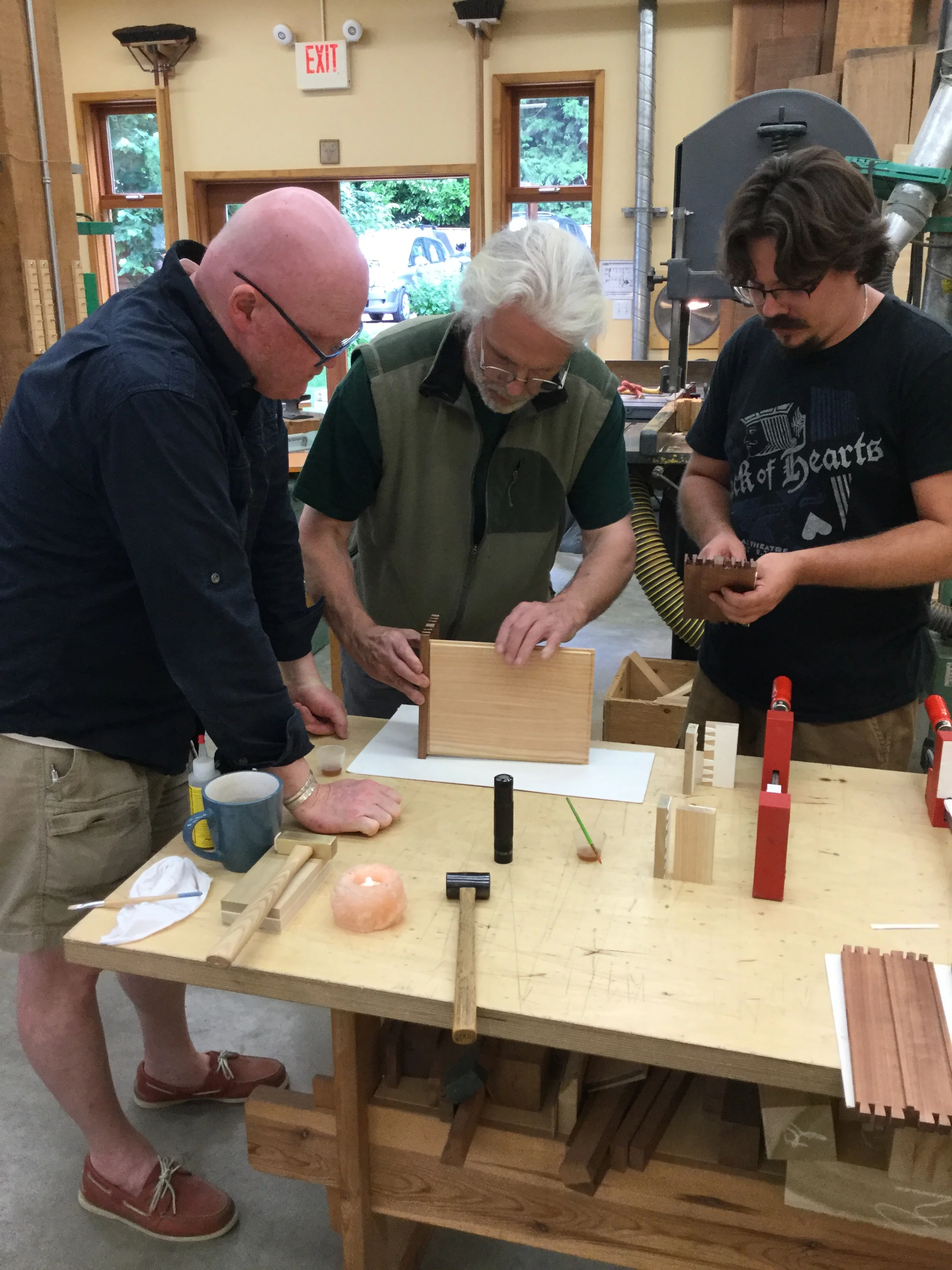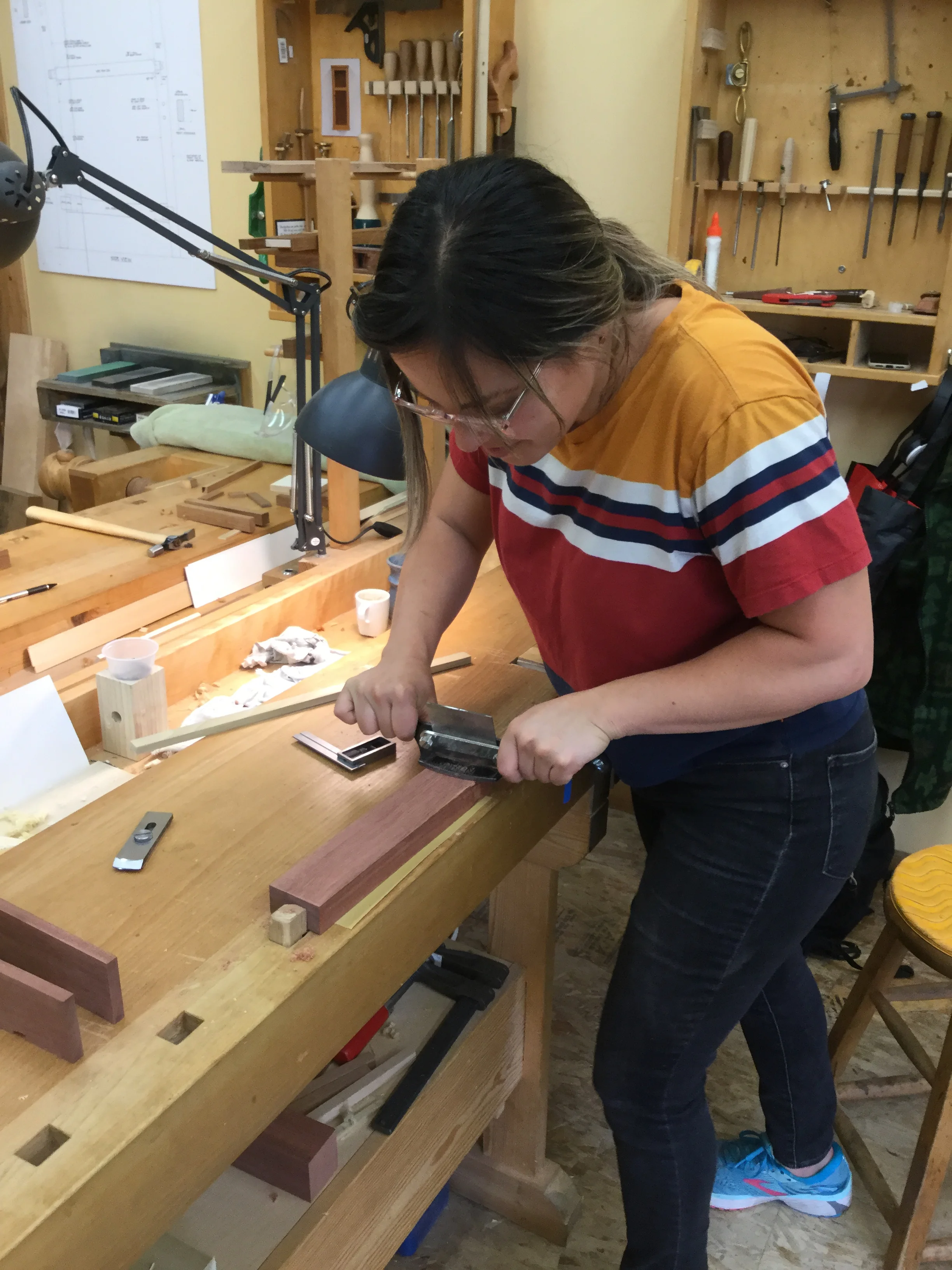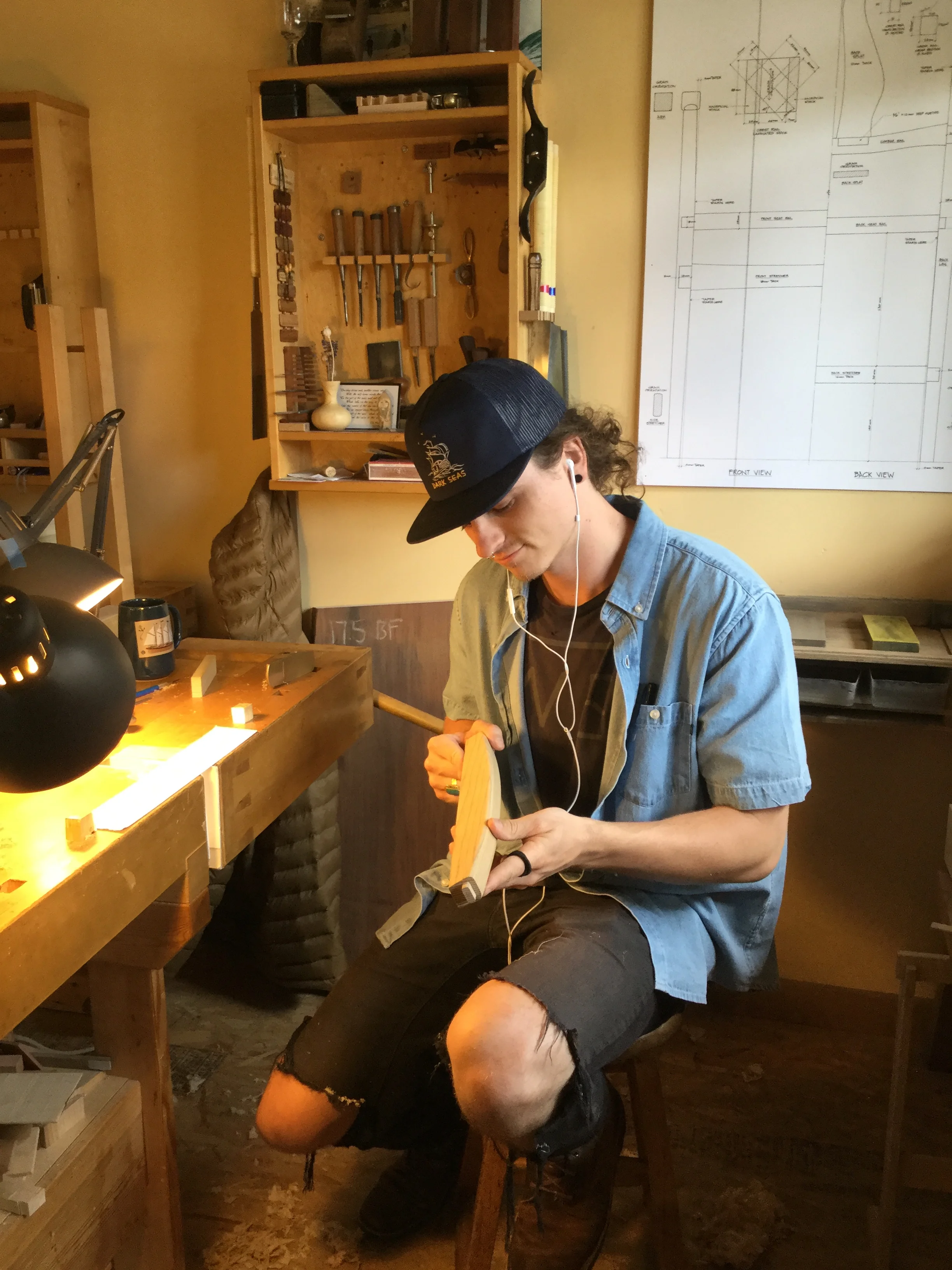 We had a full complement of students for both classes. The first class, curved bottom planes, began on the Sunday, with more than half the class staying on for the second class, curved frame and panel. In the second class, they had the opportunity to use the planes made in the first class to shape the panels in the latter. On the Tuesday evening, I gave a talk and slideshow with several of our own alumni as well as many students from each of the previous classes we taught in Israel attending. I am so grateful for all making such a considerable effort to join us. Most notably, it was so nice to catch up with Chen, Amir and of course Refeal who took both classes. It was also such a pleasure to catch up with my friend Moshe who was my bench mate during my first visit to Israel six years ago. I felt very grateful to have him in the second class.