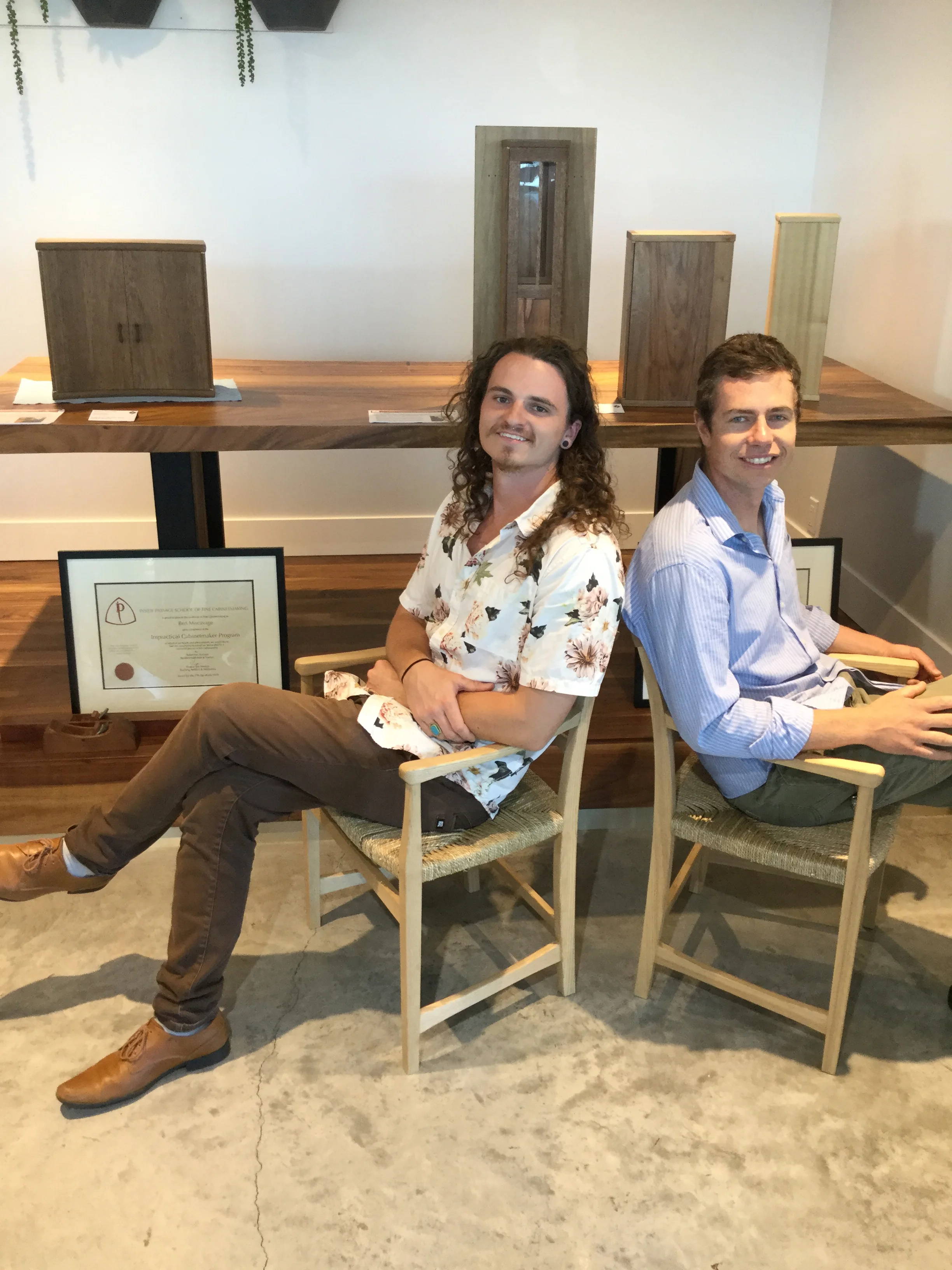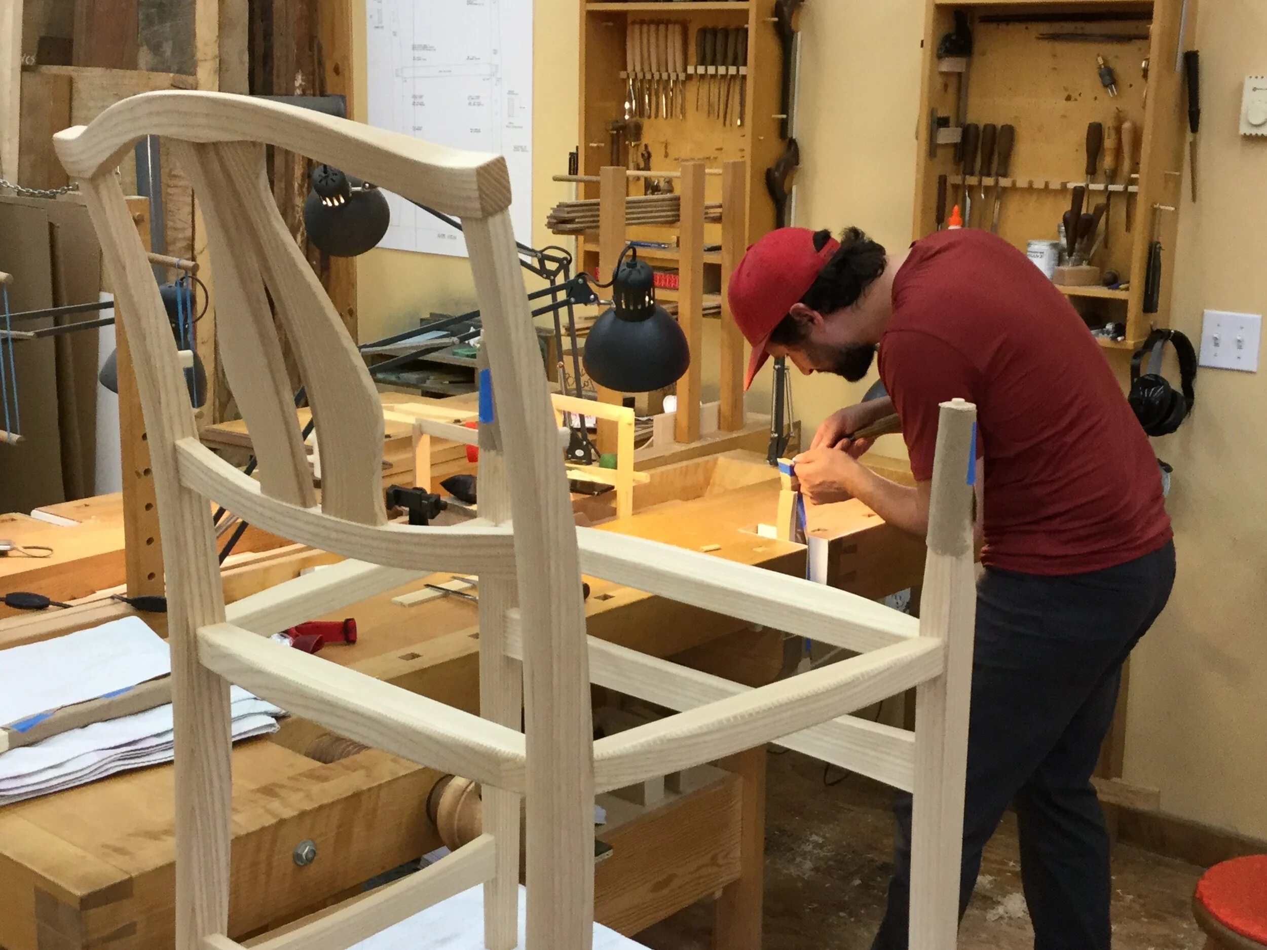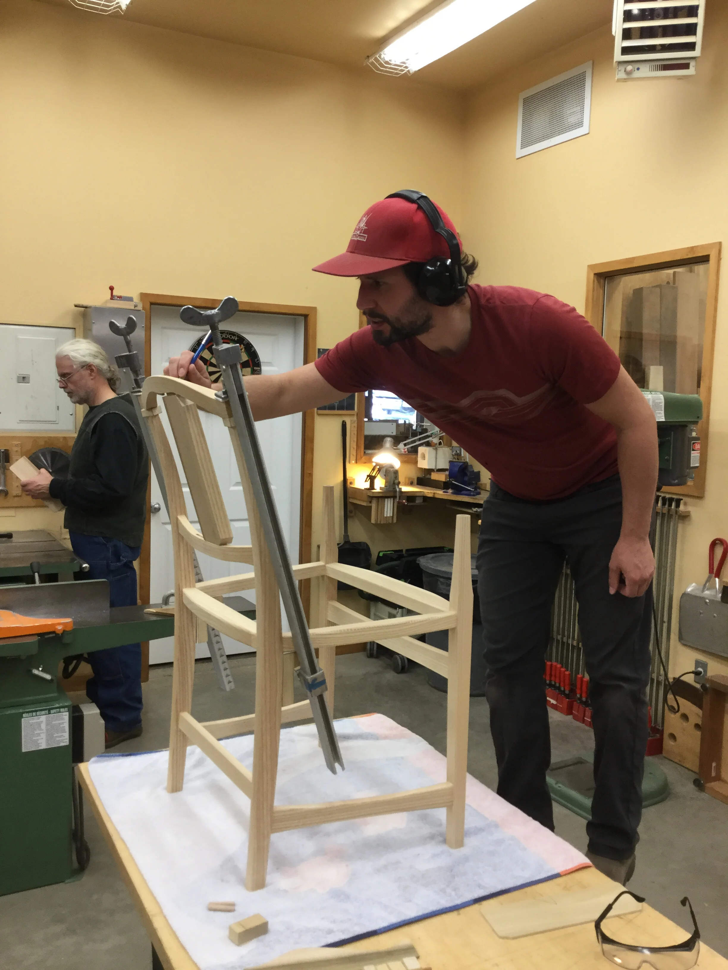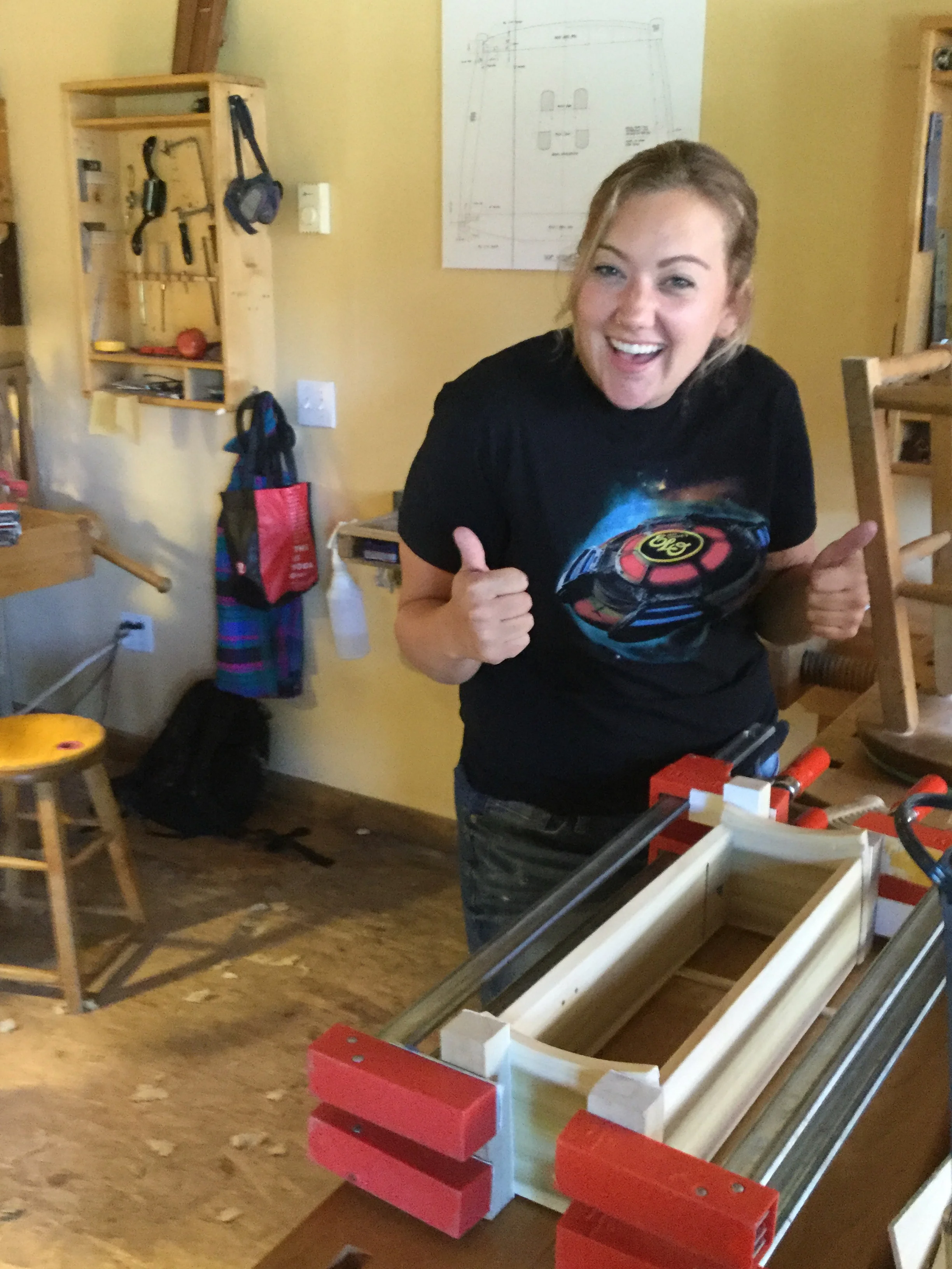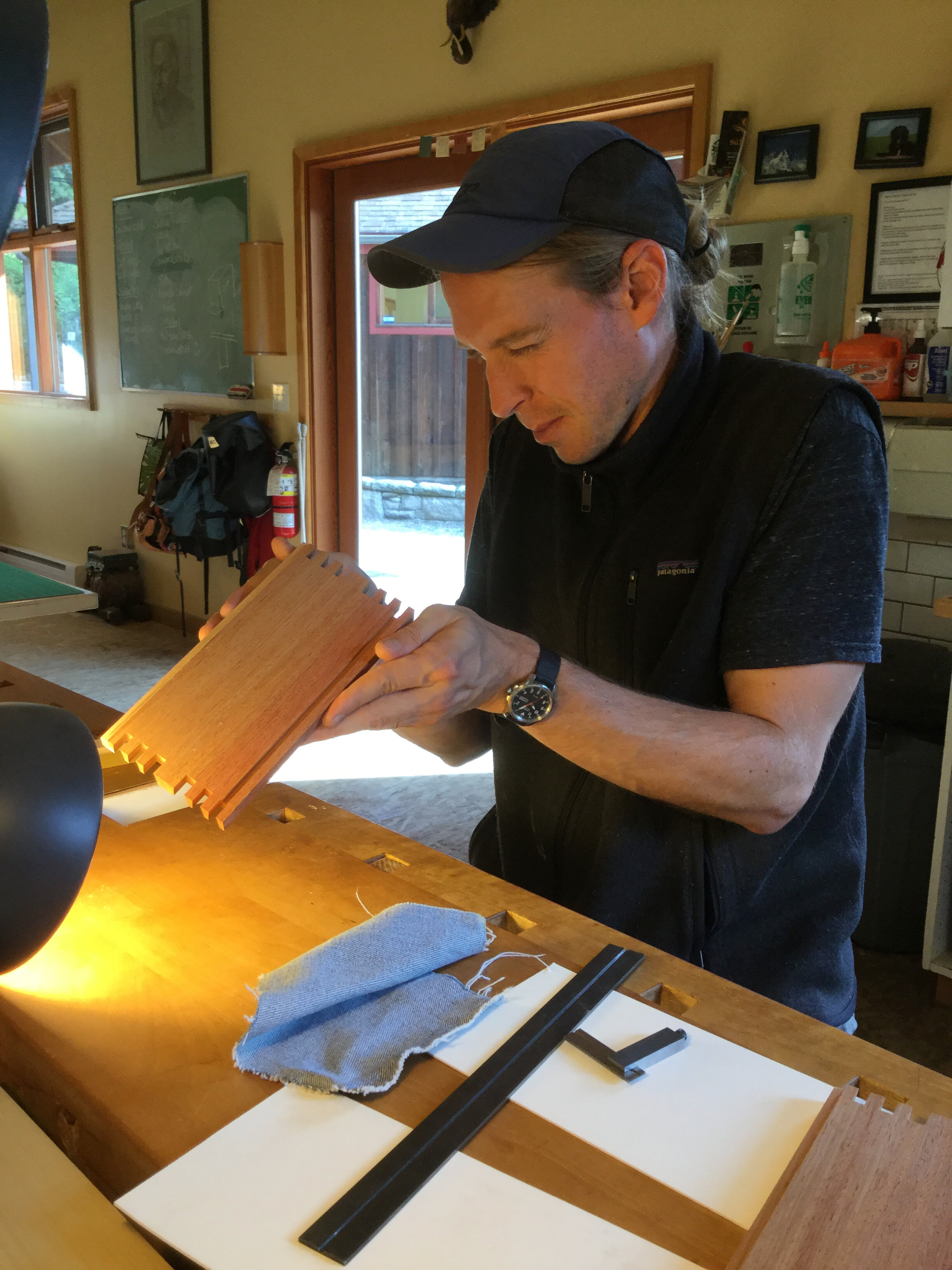 We had a full complement of students for both classes. The first class, curved bottom planes, began on the Sunday, with more than half the class staying on for the second class, curved frame and panel. In the second class, they had the opportunity to use the planes made in the first class to shape the panels in the latter. On the Tuesday evening, I gave a talk and slideshow with several of our own alumni as well as many students from each of the previous classes we taught in Israel attending. I am so grateful for all making such a considerable effort to join us. Most notably, it was so nice to catch up with Chen, Amir and of course Refeal who took both classes. It was also such a pleasure to catch up with my friend Moshe who was my bench mate during my first visit to Israel six years ago. I felt very grateful to have him in the second class.
