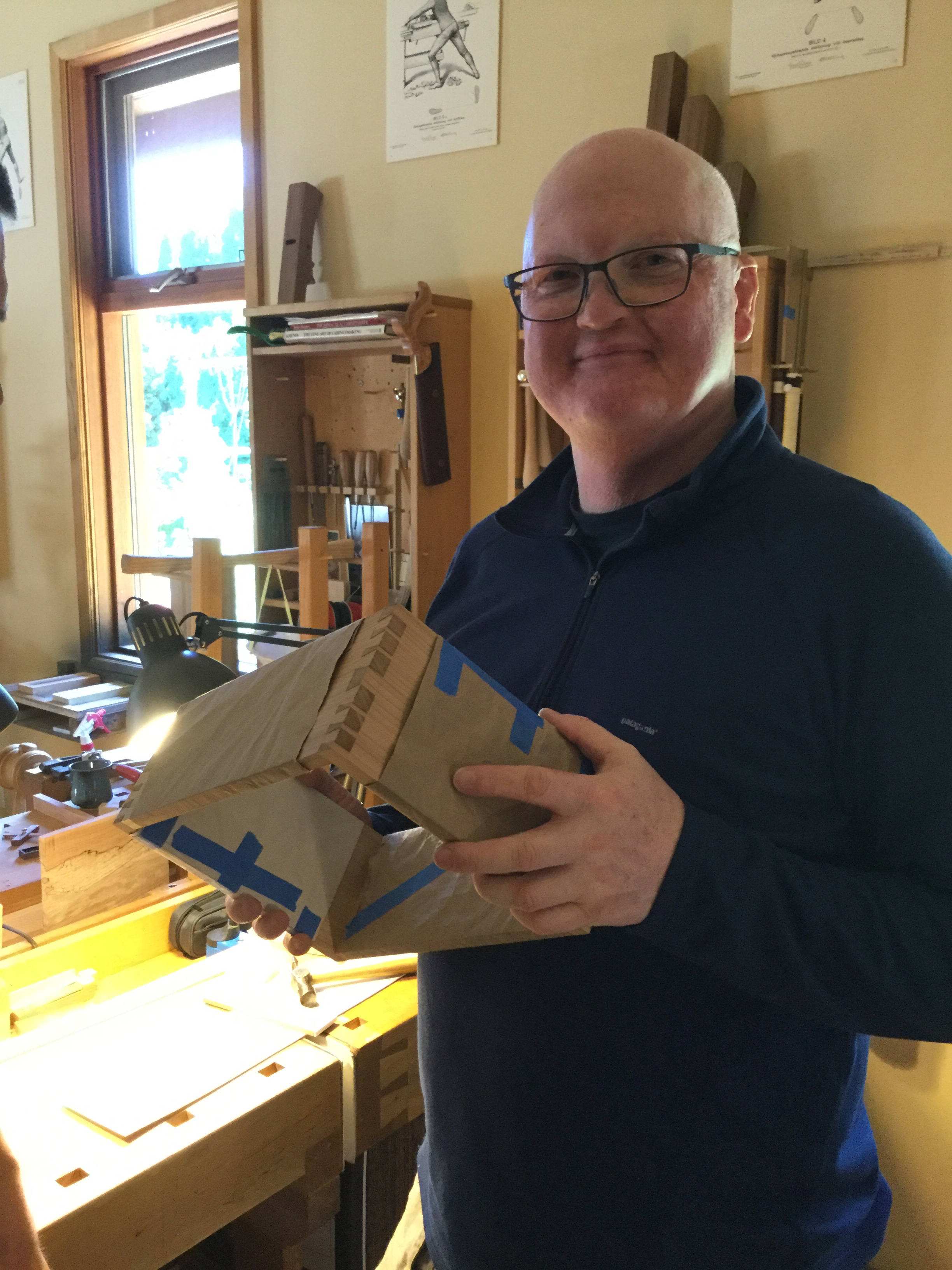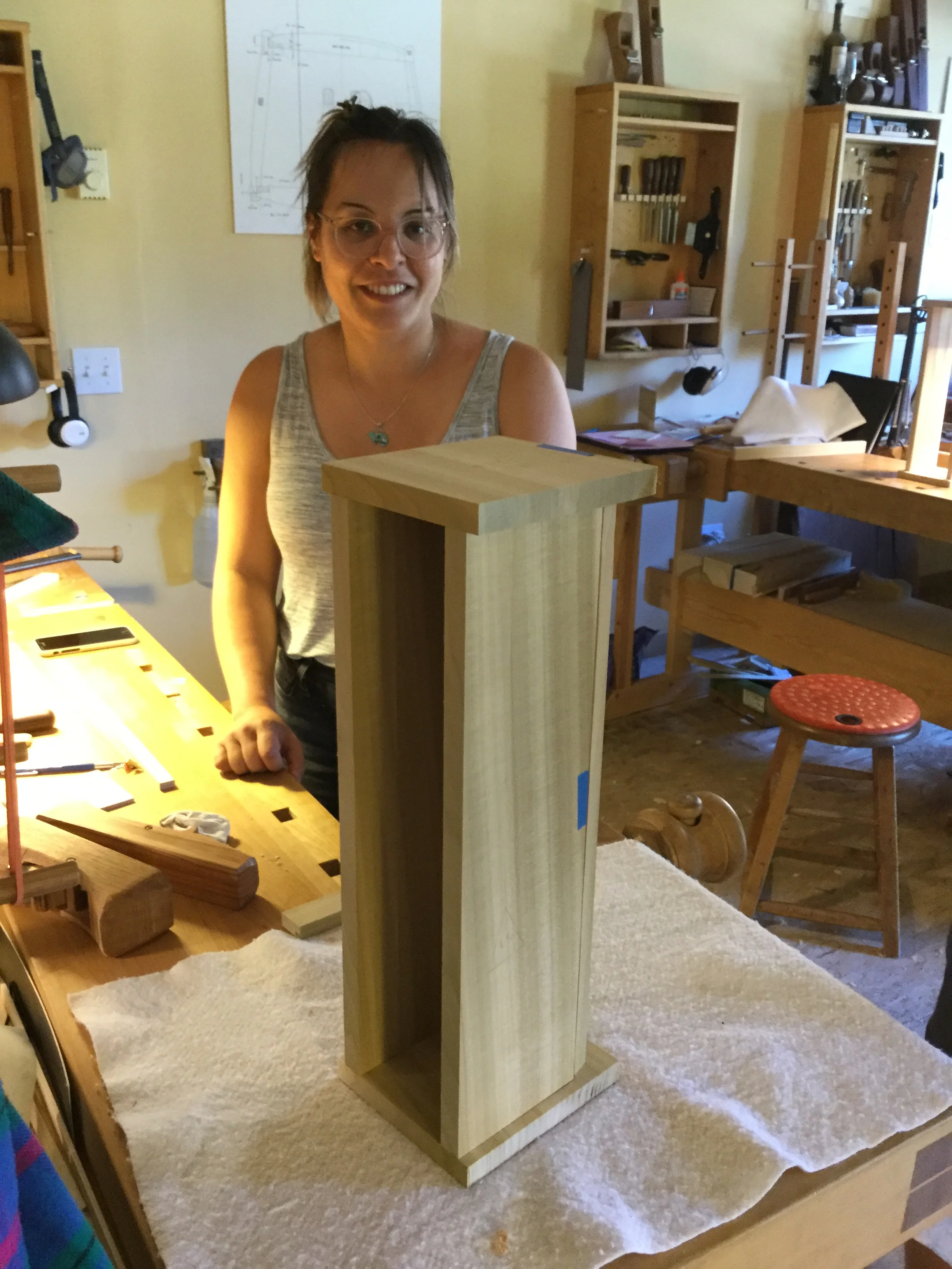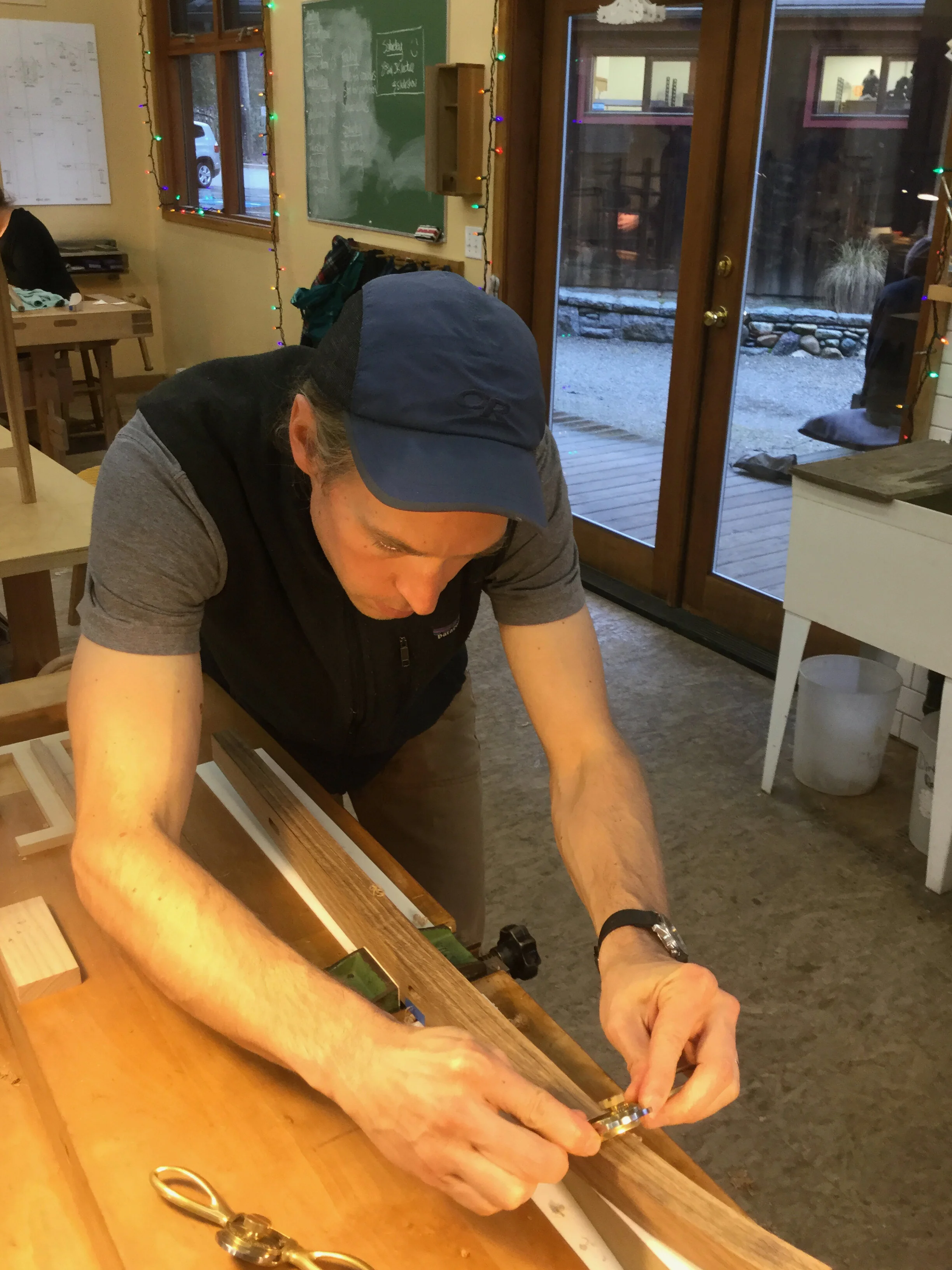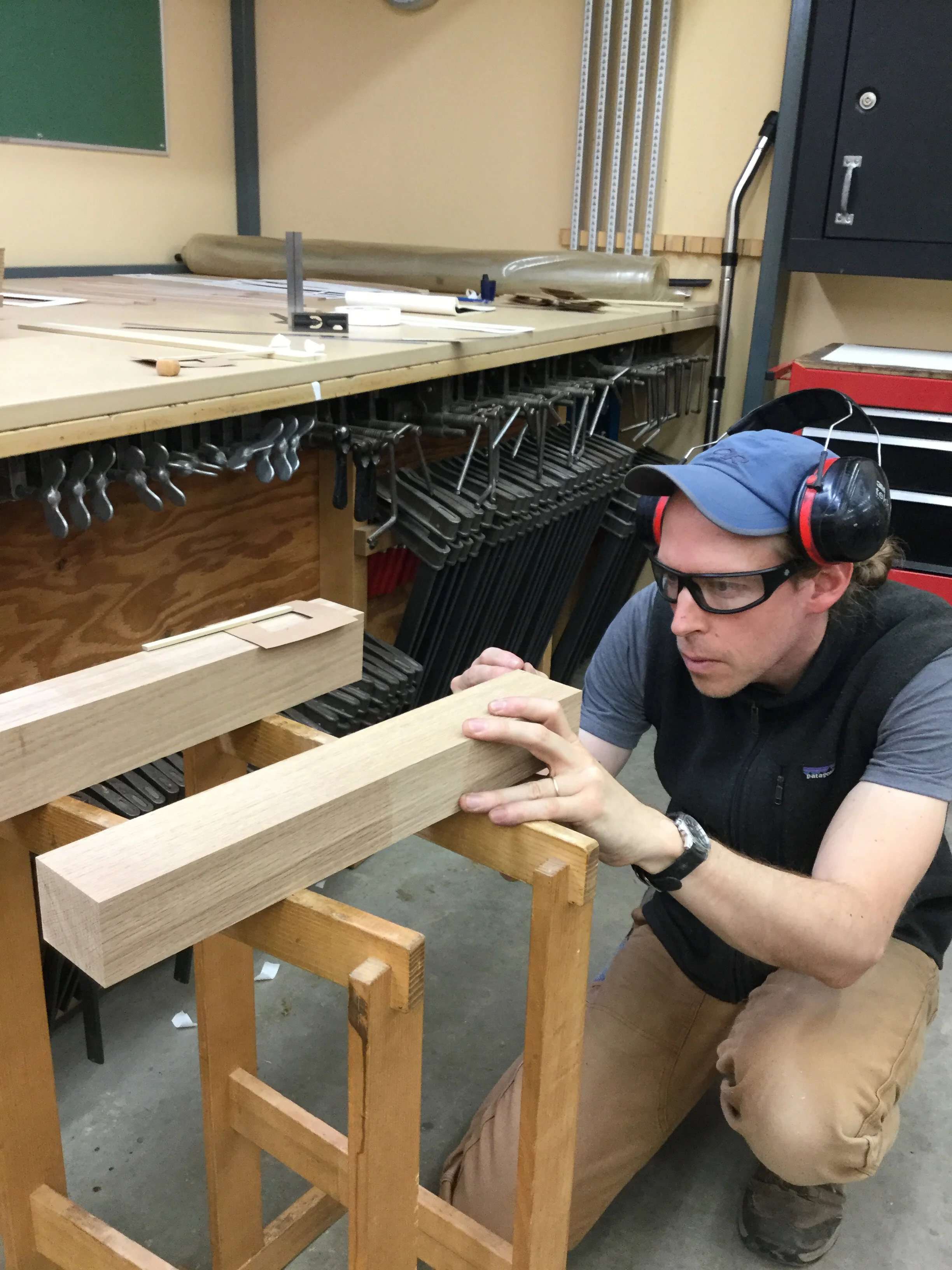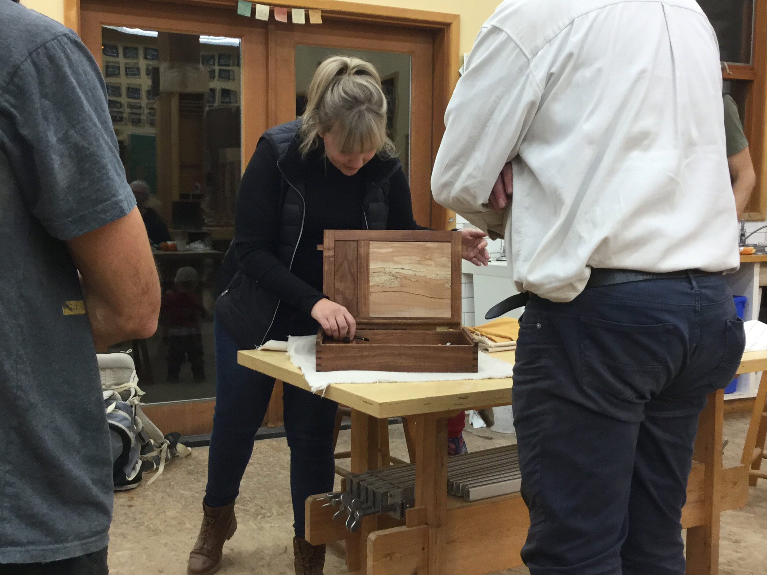 We had a full complement of students for both classes. The first class, curved bottom planes, began on the Sunday, with more than half the class staying on for the second class, curved frame and panel. In the second class, they had the opportunity to use the planes made in the first class to shape the panels in the latter. On the Tuesday evening, I gave a talk and slideshow with several of our own alumni as well as many students from each of the previous classes we taught in Israel attending. I am so grateful for all making such a considerable effort to join us. Most notably, it was so nice to catch up with Chen, Amir and of course Refeal who took both classes. It was also such a pleasure to catch up with my friend Moshe who was my bench mate during my first visit to Israel six years ago. I felt very grateful to have him in the second class.