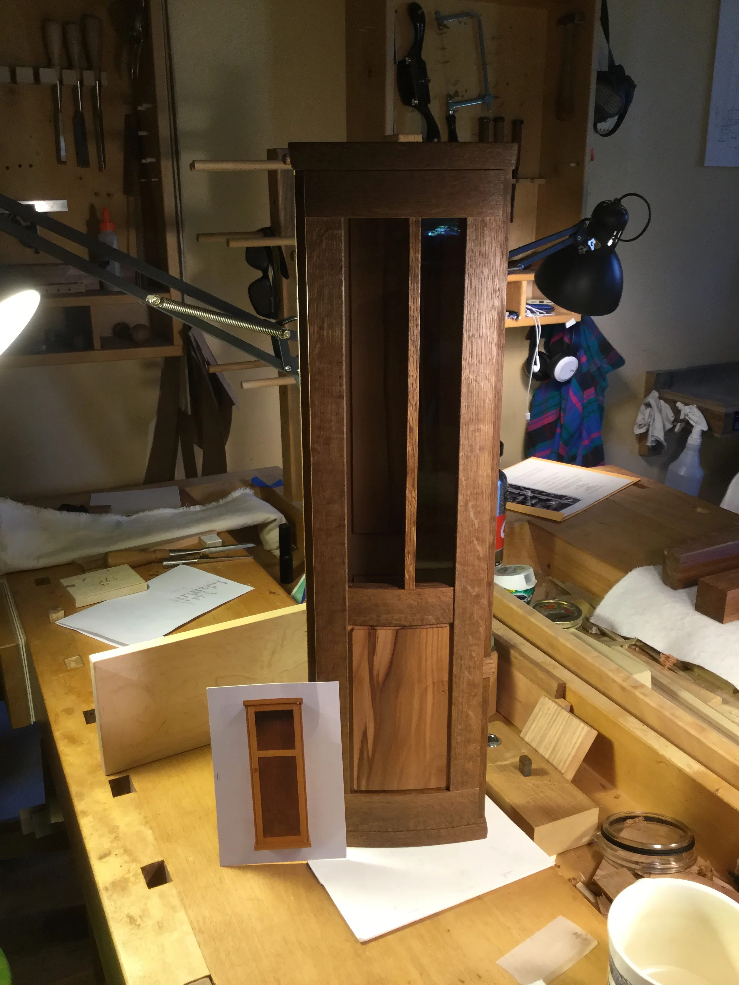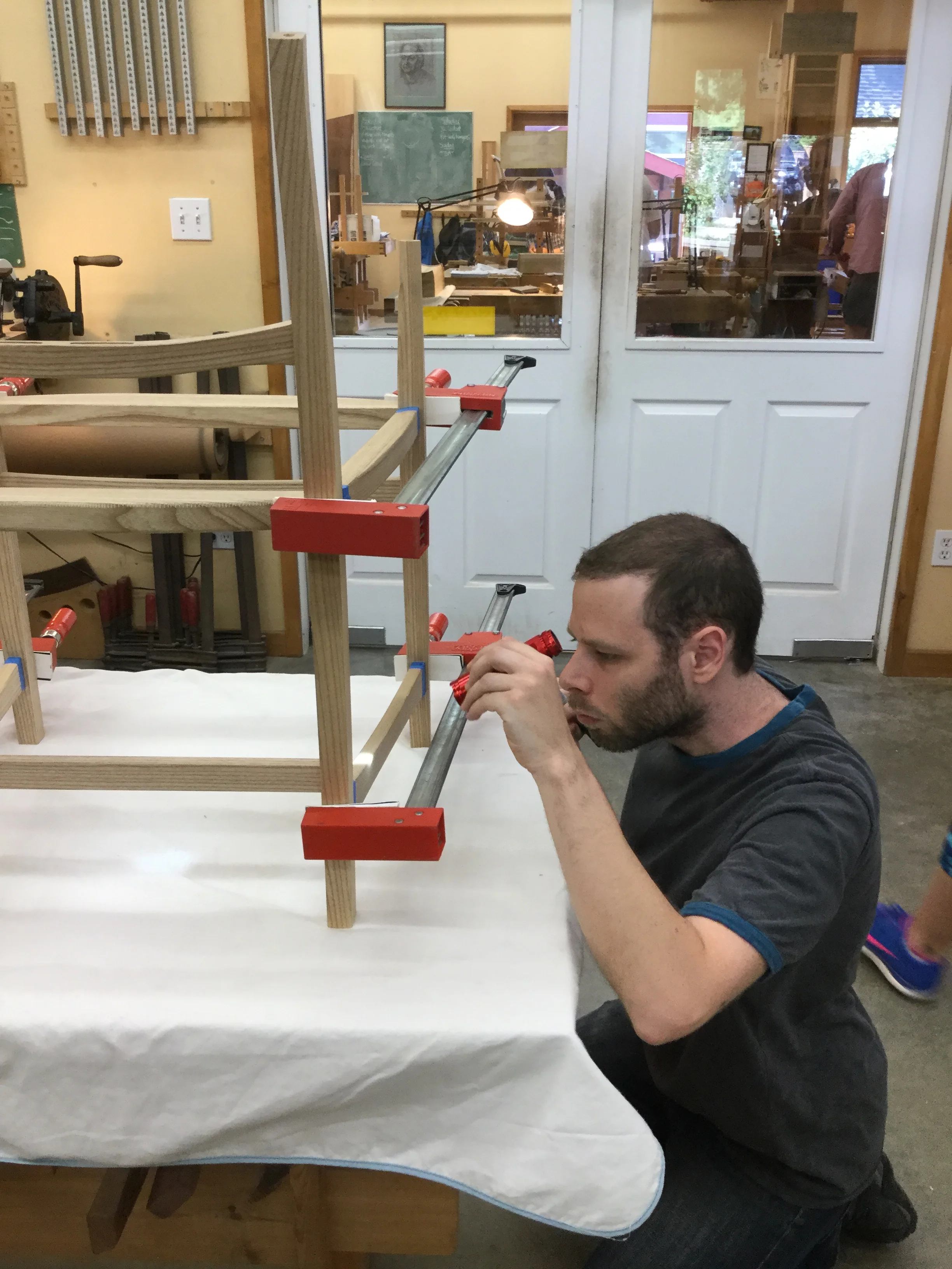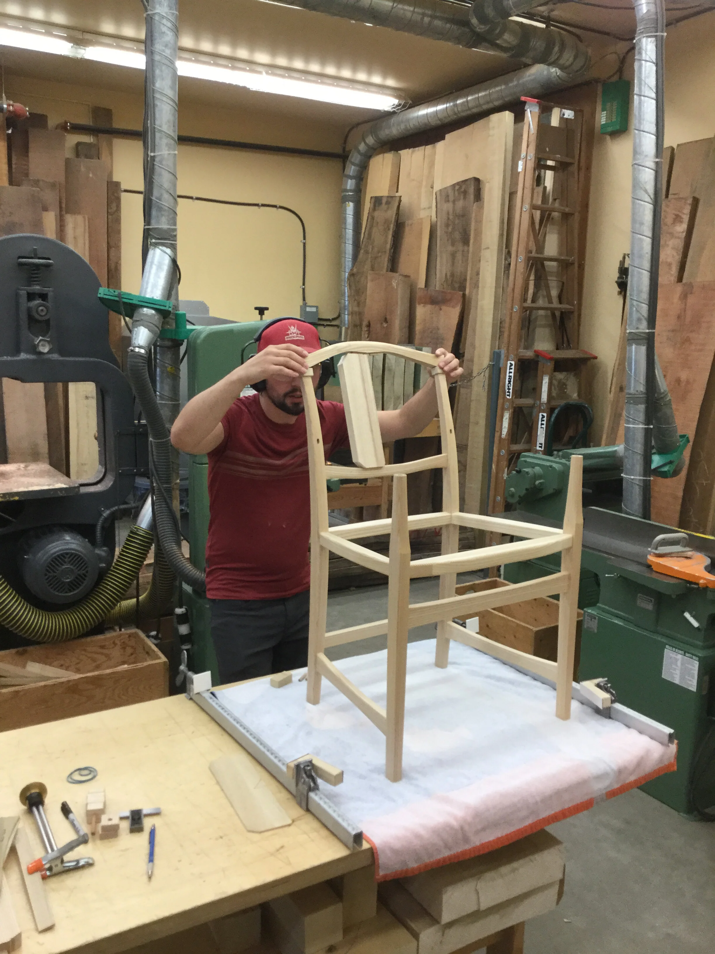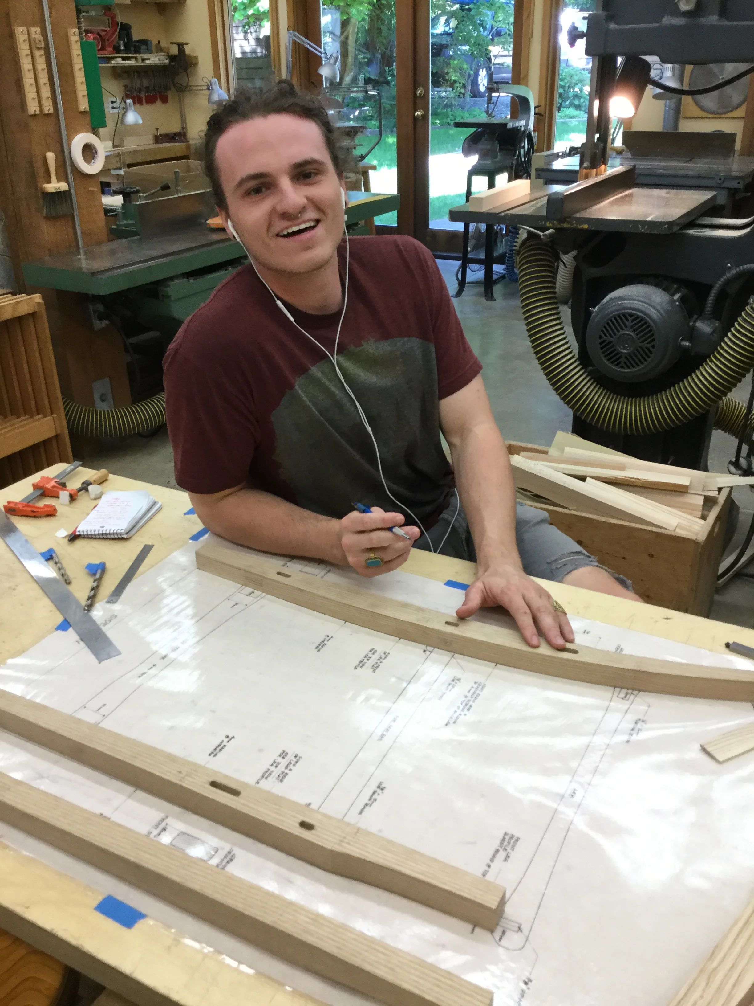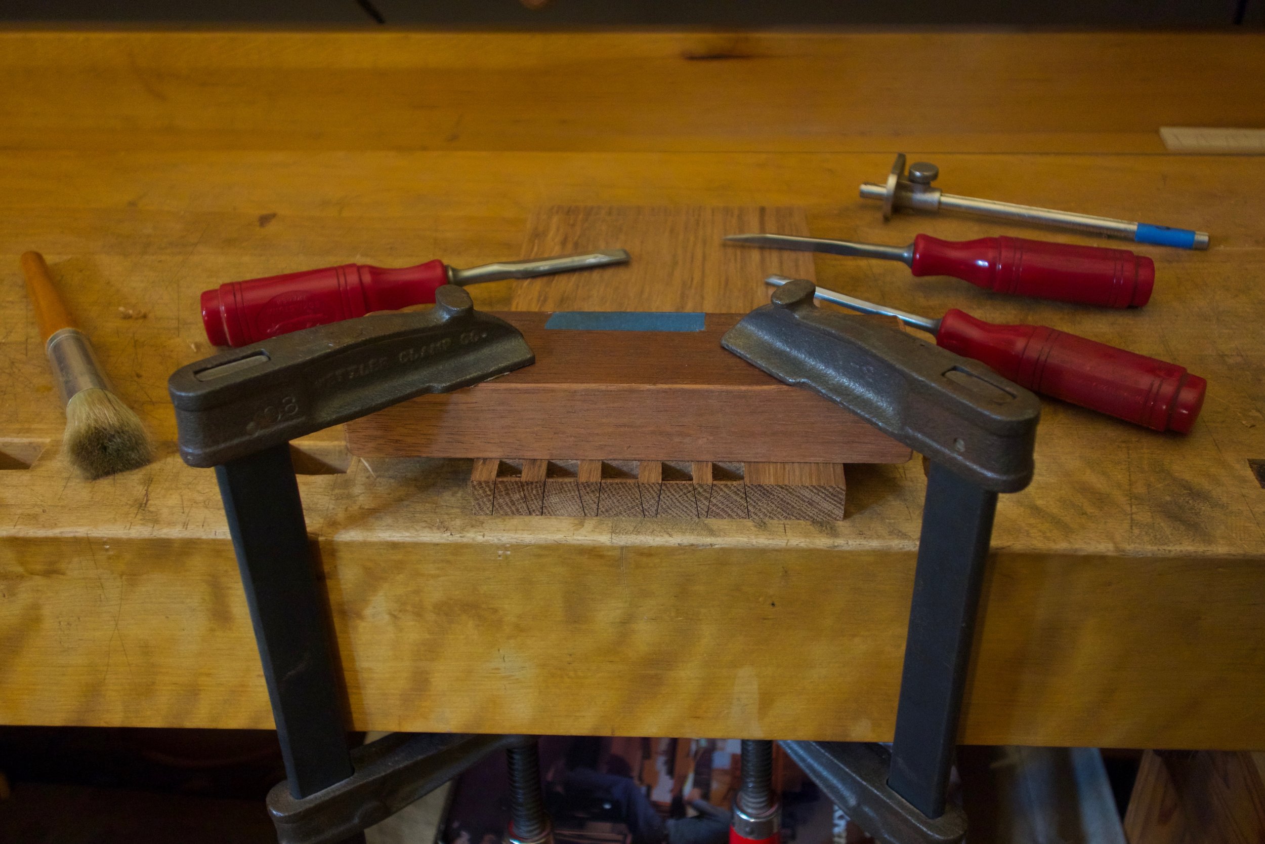 We had a full complement of students for both classes. The first class, curved bottom planes, began on the Sunday, with more than half the class staying on for the second class, curved frame and panel. In the second class, they had the opportunity to use the planes made in the first class to shape the panels in the latter. On the Tuesday evening, I gave a talk and slideshow with several of our own alumni as well as many students from each of the previous classes we taught in Israel attending. I am so grateful for all making such a considerable effort to join us. Most notably, it was so nice to catch up with Chen, Amir and of course Refeal who took both classes. It was also such a pleasure to catch up with my friend Moshe who was my bench mate during my first visit to Israel six years ago. I felt very grateful to have him in the second class.